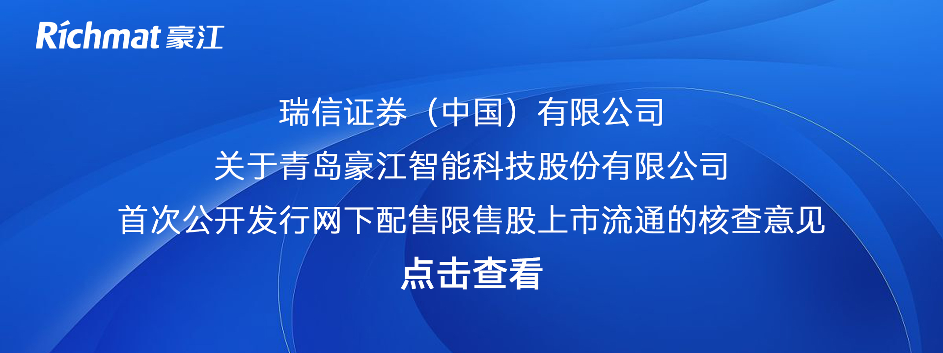 瑞信证券(中国)有限公司关于青岛豪江智能科技股份有限公司首次公开发行网下配售限售股上市流通的核查意见