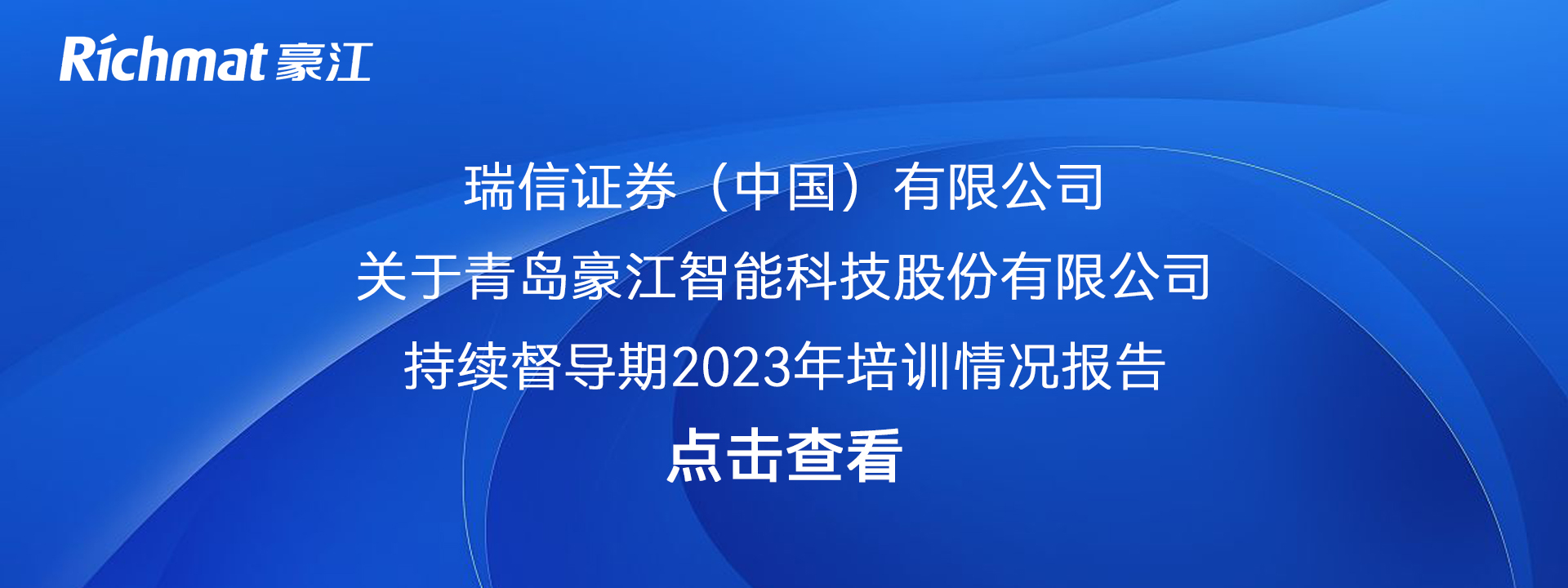 瑞信证券(中国)有限公司关于青岛豪江智能科技股份有限公司持续督导期2023年培训情况报告