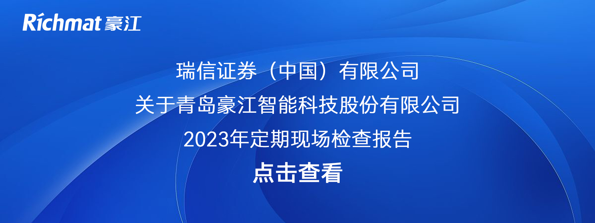 瑞信证券(中国)有限公司关于青岛豪江智能科技股份有限公司2023年定期现场检查报告