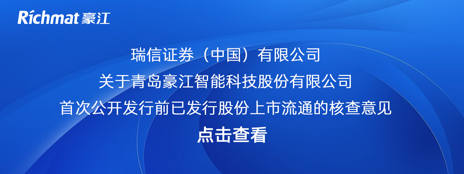 瑞信证券(中国)有限公司关于青岛豪江智能科技股份有限公司首次公开发行前已发行股份上市流通的核查意见